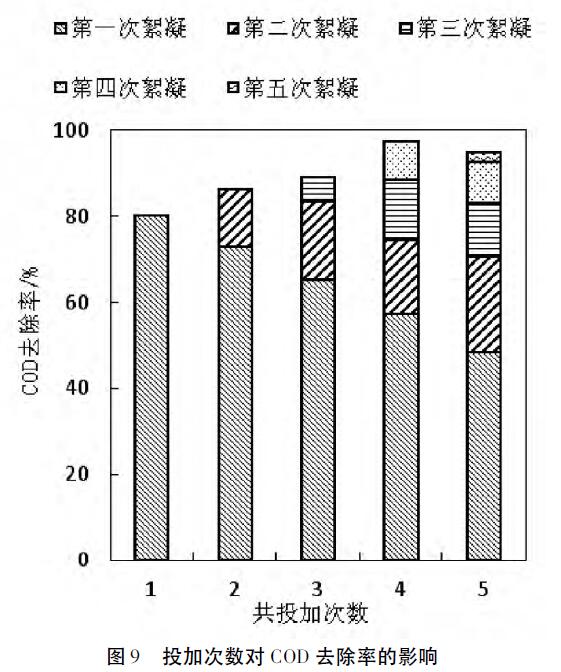 2.3.4投加次數對氧化處理效果的影響